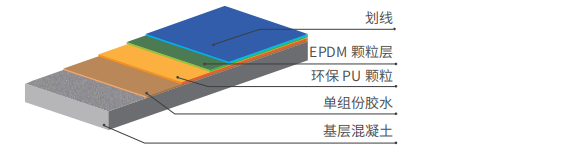 適用范圍: 適用于幼兒園各級各類學校及專業(yè)體育場、田徑場跑道、半圓區(qū)、輔助區(qū),全民健身路徑,室內(nèi)體育館訓練跑道,游樂場道路鋪面,室內(nèi)外跑道、網(wǎng)球、籃球、排球、羽毛球、手球等場地,公園、居民小區(qū)等活動場地。 性能特點: 達到國家標準。機械鋪裝、機械噴涂,平整度佳、無脫?,F(xiàn)象。 有孔隙,可透水、透氣,彈性好,無起泡現(xiàn)象。可全天使用,耐磨性強、耐候性佳、耐壓縮性強、耐沖擊性佳、堅固耐用。 施工工藝: 1、在基礎(chǔ)表面涂刷一層高強度單組份膠水; 2、將環(huán)保PU顆粒添加高強度單組份膠水,攪拌均勻,攤鋪厚度為8mm,固化保養(yǎng)24小時; 3、采用EPDM彩色顆粒添加高強度單組份膠水,均勻攪拌,攤鋪厚度為5mm,固化保養(yǎng)48小時方可使用。